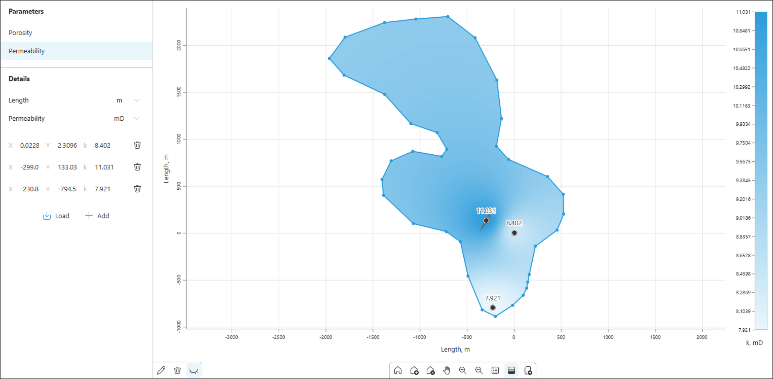 A system for defining physical properties for each scheme element has been implemented, along with input fields for general parameters of the modeled reservoir.